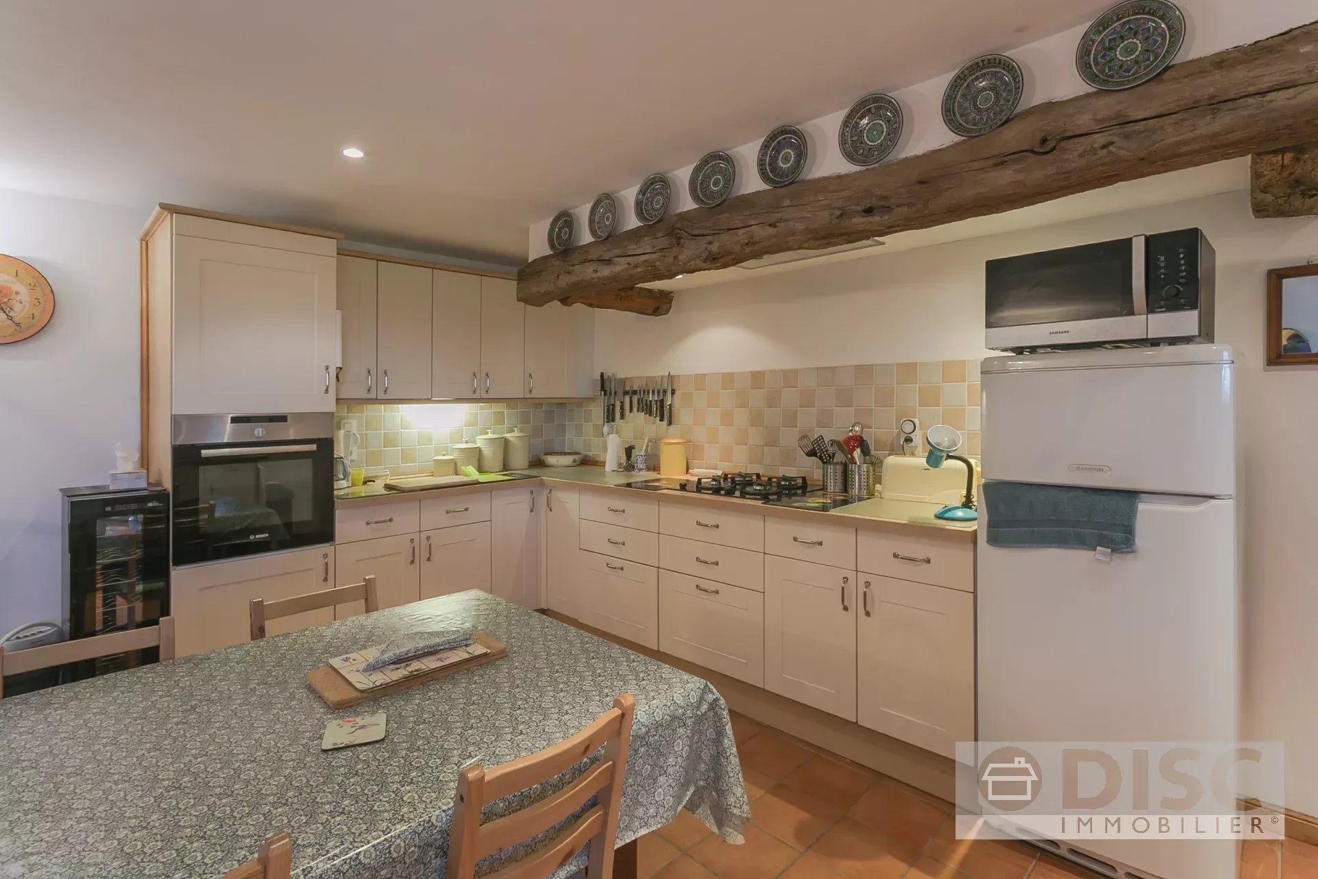 La cuisine, récente et entièrement équipée, bénéficie d’une porte donnant sur l’extérieur.