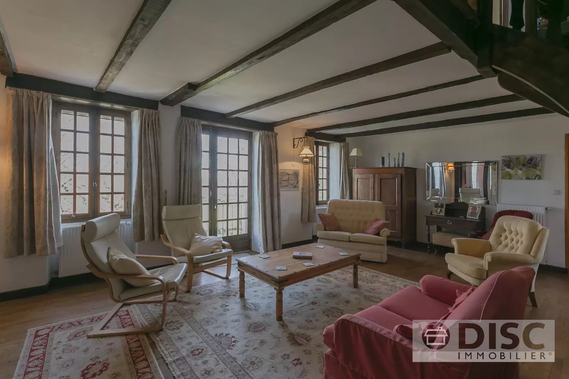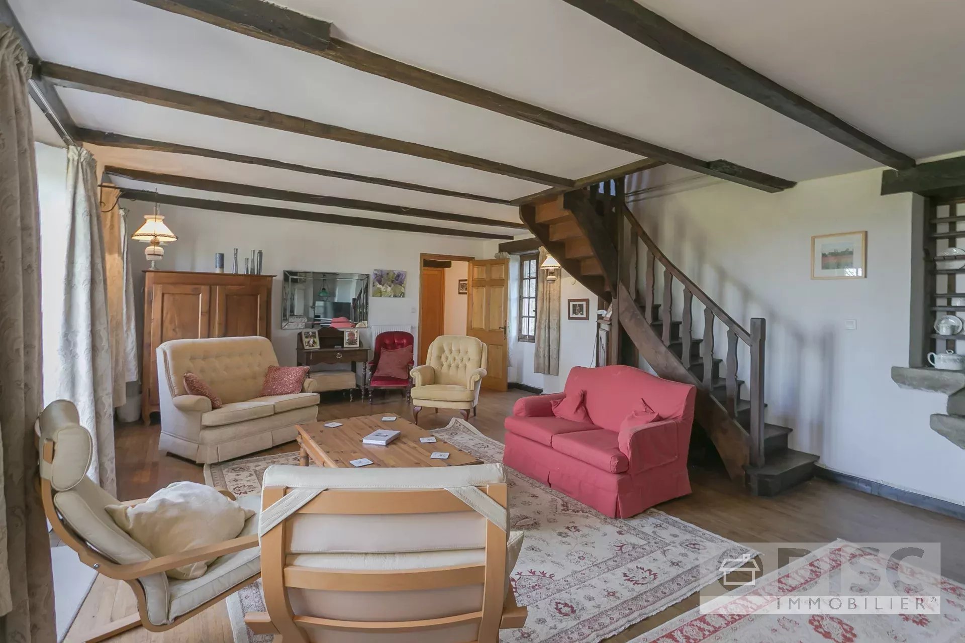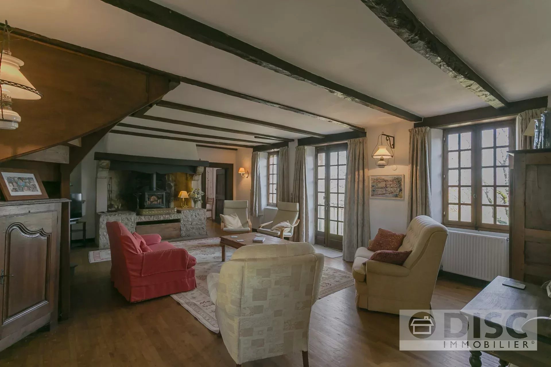 Le premier étage accueille un grand salon lumineux, doté d’une cheminée et d’un poêle à bois. Cette pièce se distingue par son charme, ses portes-fenêtres et ses ouvertures qui la baignent de lumière.